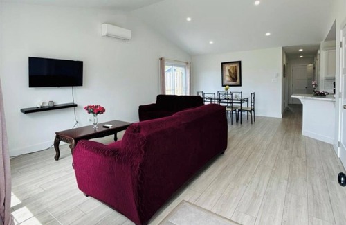 This stylish place to stay is perfect for group trips. Enjoy your vacation with this spacious house in a very peaceful neighbourhood with 1 indoor and 2 outdoor parking. 5 min drive to downtown, with 2 min drive to pharmacy and liquor store. Also 2 min walk to the nearest grocery store.
