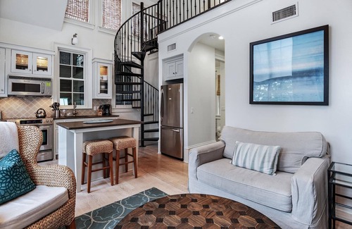 Crow's Nest es una casa de 2 dormitorios y 1 baño ubicada en el corazón de Rosemary Beach a lo largo de la autopista 30A. Esta encantadora cochera iluminada por el sol se encuentra a solo unos pasos del centro de la ciudad, la piscina de Barbados y la playa. Al entrar, encontrará una acogedora sala de estar con HDTV para su entretenimiento. El asiento del amor, que se dobla como una cama adicional, puede acomodar a un invitado adicional. Incluye una cocina completa para preparar comidas y bocadillos, así como una isla con capacidad para dos personas. La terraza envolvente le permite echar un vistazo al Golfo de México mientras disfruta de la puesta de sol o una copa de vino. A la vuelta de la esquina de la cocina encontrará una habitaci��n con literas con dos camas individuales, una lavadora / secadora y un baño completo con ducha con mampara de vidrio. Justo encima de la escalera de caracol en la sala de estar hay un gran dormitorio principal con una cama tama��o king de Tempurpedic. Esta área tiene la sensación de un loft y da a la sala de estar de la planta baja, lo que hace que el espacio se sienta abierto y lleno de luz. Escriba algunas tarjetas postales a sus amigos y familiares utilizando el escritorio ubicado junto a una ventana que da a la ciudad. ¡La arena blanca azucarada y las aguas color esmeralda del Golfo de México están a menos de 100 yardas por el paseo marítimo de madera! Esta casa es perfecta para una pareja o una familia pequeña para crear una experiencia de vacaciones memorable. ¡Paraíso encontrado!