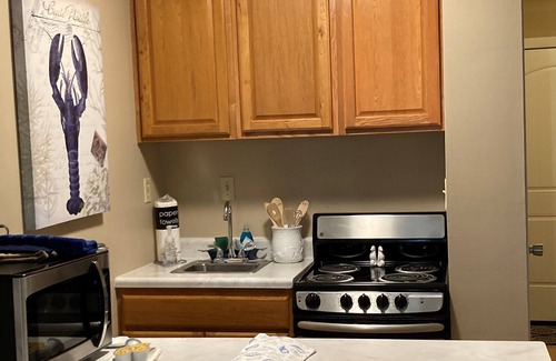 Prepara una comida casera en la cocina, equipada con placa de cocina, frigorífico y lavavajillas, además de cafetera y tetera, microondas y utensilios de cocina. El cuarto de baño incluye un secador de pelo, toallas y jabón. Y no tendrás que llevarte ropa de más, porque también hay acceso a una lavandería. Otras comodidades incluyen ropa de cama, una tabla de planchar, aire acondicionado y una mesa de comedor.