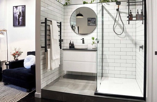 There is a smart TV for watching TV in bed, two comfy velvet club chairs, and plenty of spots to curl up and read with the in-house book selection. The bed area features sheer curtains for a romantic, captivating, and stylish stay, with oversized wall mirrors guaranteed to take your breath away. The home is fully heated with hydronic heating, offers a ceiling fan for the bedroom, and features air-conditioning in the lounge room and heated tiles in the kitchen.