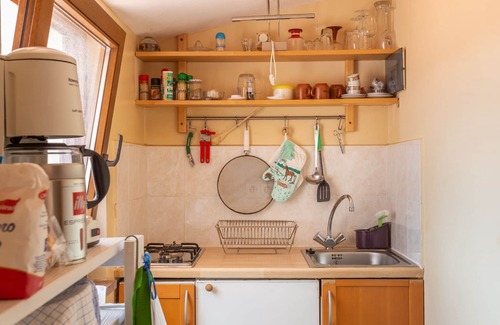 La cocina tiene un lavaplatos, una estufa de gas de cinco quemadores, una cafetera Saeco totalmente automática, así como una cafetera alemana y una. Bialetti, una tostadora, horno y microondas.