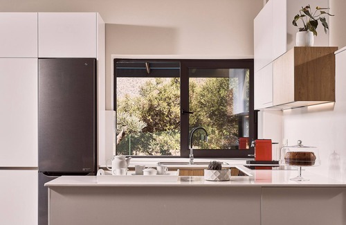 Al ingresar a la Villa, se encontrará en un área espaciosa y abierta que consiste en la sala de estar y la cocina. La zona de estar cuenta con un sofá cómodo, 65 '' HDTV con Netflix, cine en casa y bluetooth altavoz, así como un comedor interior, disfrutando de hermosas vistas a la naturaleza de los olivos, mientras que la cocina totalmente equipada ofrece todos los elementos esenciales para un auto atendido vacaciones.
