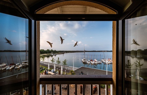 Nuestra sala de capitanes puede alojar hasta 3 personas en una habitación espaciosa. Deja que el sol te despierte a través de las ventanas del piso al techo por la mañana, prepara un café recién hecho con tu cafetera Nespresso y entra a tu balcón. Con la vista relajante sobre la extensión del lago, puede llenar la energía suficiente para su día activo y quizás también en el agua.