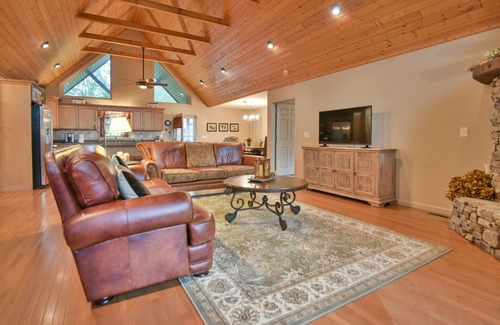 Disfruta de nuestro hermoso refugio de montaña en el pintoresco valle de Iron Duff. Esta casa de 4 dormitorios ofrece un entorno privado de montaña con excelentes vistas a la montaña y fácil acceso para disfrutar de sus vacaciones. Gran salón con chimenea y cocina a medida con todas las comodidades del hogar. Fantástico patio plano para disfrutar con familiares y amigos. Decoradas con buen gusto con todos los muebles nuevos, incluidos televisores inteligentes en todas las habitaciones. Cerca de todo lo que nuestra maravillosa área tiene para ofrecer. Perfecto para motos con amplio garaje para estacionamiento interior. A solo 15 minutos del histórico Waynesville, Maggie Valley y Blue Ridge Parkway. Además, a solo 30 minutos de Asheville, a 20 minutos de Cataloochee Ranch para esquiar y montar a caballo, y a 40 minutos de rafting en aguas bravas. Una vez que se quede en esta casa, nunca querrá irse.