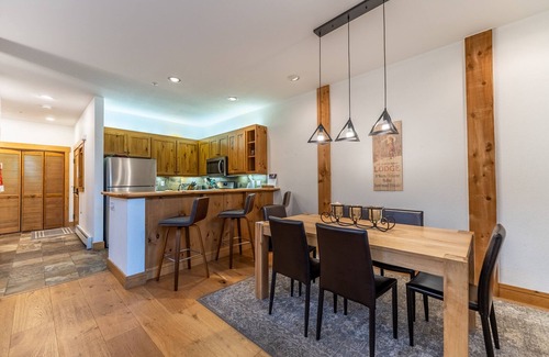 Esta casa adosada de 1,390 pies cuadrados con 2 dormitorios y 2. 5 baños tiene capacidad para 4 personas y cuenta con una espaciosa suite principal con una cama king. Hay un garaje privado para un automóvil y lavandería privada. La cubierta ofrece hermosas vistas arboladas con montañas en la distancia y una parrilla privada. Con el servicio de transporte del complejo que se encuentra cerca, estás a solo minutos de la góndola, las tiendas, los restaurantes y las festividades.