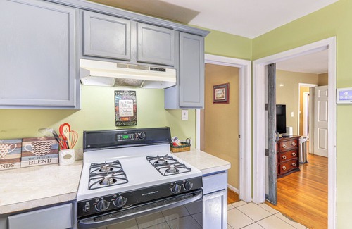 - Las comodidades incluyen una cocina totalmente equipada, WiFi gratuito, 3 televisores de pantalla plana por cable, unidades de aire acondicionado con ventana, una parrilla de carbón, una chimenea de leña con un registro de inicio (leña no incluida), acceso a una piscina pública, estacionamiento en la entrada para 3 autos y más