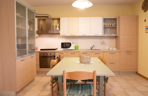 Appartamento al secondo piano en struttura molto tranquilla. Ampio soggiorno con attrezzato piano cottura; ci sono posate, piatti e stoviglie per accogliere sei persone. La cocina tiene una disposición pentole y quanto servir por cucinare. C'è un piano cottura e un forno a microonde per cottura veloce e un forno per cottura normale. C'è una lavastoviglie. C'è un frigo grande, con congelatore. Due camere: una con letto matrimoniale e un'altra con letto a una piazza e mezza. Nel soggiorno c'è un divano-letto che all'occorrenza è utilizzabile come letto a due piazze. Bagno con doccia. Ci sono due terrazze da cui si vede a panorama delle colline del sito UNESCO con le vigne del Prosecco DOCG.