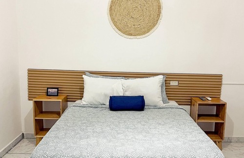 Esta casa de vacaciones de 1 dormitorio y 1 baño está ubicado en La Libertad, una ubicación ideal para explorar los alrededores. A los amantes de la naturaleza y el aire libre les encantará estar a 5min en coche de Playa San Blas y a 7min de Playa de El Majahual. Estarás a 3min en coche de Parque de atracciones Sunset Park y a 4min también en coche de Playa Punta Roca.