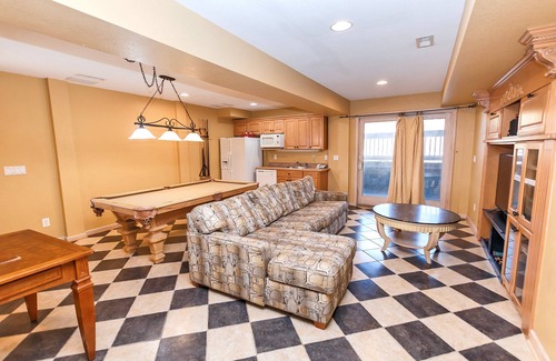Mid Level: 3 King Master Bedrooms each with flat-screen TV, access to the deck overlooking the pool and private bathrooms (1-with whirlpool tub and grab rails in the shower and by the toilet). Queen Master Bedroom with flat-screen TV and private bathroom and deck access, Master Bedroom with 2 Bunk Sets and a private bathroom. Foyer with closet with a desk and printer, laundry area with utility sink, washer/dryer, full-size refrigerator and deck access.