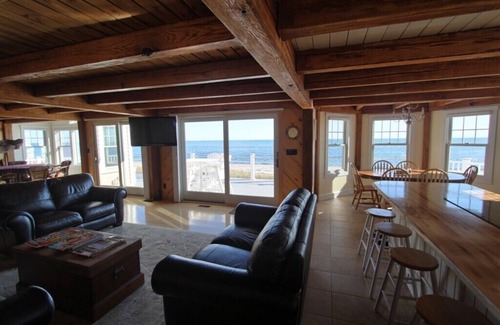 Con aire acondicionado central en toda la casa duerme 10 y contiene: cocina, sala de estar, sala de estar separada de habitaciones, 4 dormitorios, 3 y 1/2 baños y una terraza Frontal grande Océano que ilumina en la noche! El baño principal tiene una ducha de masaje de chorros y un jacuzzi para 2 personas con las luces que iluminan. Mientras que en el jacuzzi, vistas a la playa y Nantucket Sound y escuchar el sistema estéreo incorporado o disfrutar de la TV montada en la pared. Hay pared de TV por cable de toda la casa. Acceso a Internet inalámbrico de alta velocidad está disponible. Usted puede disfrutar de la mesa de billar parachoques, mientras que con vistas al mar!