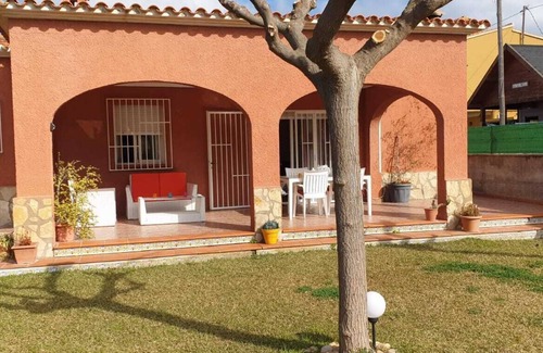La casa esta ubicada en un barrio muy tranquilo en primera linea de playa, con un gran jardín privado y aparcamiento para 4 vehículos. La casa dispone de todas las comodidades necesarias, asi como también de wifi gratis. Casa muy soleada, ideal para sus vacaciones. Parcela completamente cerrada y vallada para la seguridad de niños y mascotas.La playa es de fina arena