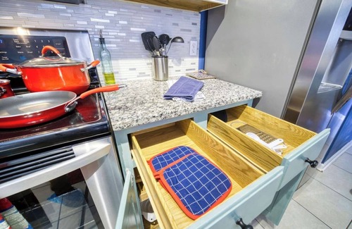 Al instalarte en este alojamiento de 5 dormitorios y 2.5 baños, encontrarás un sofá cama, una zona para barbacoas, chimenea y aire acondicionado. El cuarto de baño incluye un secador de pelo y toallas. La cocina está equipada con horno, placa de cocina y frigorífico, además de cafetera y tetera, microondas y utensilios de cocina. Y no tendrás que llevarte ropa de más, porque podrás aprovechar la lavadora y la secadora.