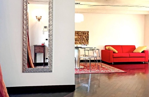 En pleno centro histórico de Verona, a 2 minutos a pie de la Arena y a 5 minutos a pie del balcón de Romeo y Julieta, en la calle peatonal más famosa Via Mazzini, este particular piso con vigas vistas le garantizará una estancia especial en la mayor tranquilidad, amplio espacio y con un balcón muy agradable siempre soleado.