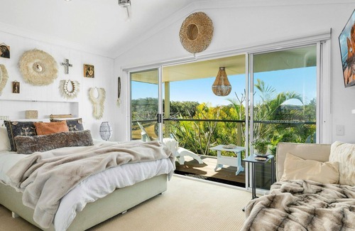 The open plan living area is spacious, tastefully furnished and includes a lounge suite, fireplace, smart TV, 8 seater dining table, ceiling fan and flows seamlessly out to the gorgeous entertaining area. Here you can relax and unwind on the outdoor furniture, fish from your private deck, enjoy a swim in the pool, relax in the Cabana, make use of the built in bar and Barbeque setting which includes a full kitchen all whilst taking in the brilliant water and tropical greenery views. Wander down to the boardwalk to the waters edge, paddle a surf ski around the waterways or to the other side and walk around the waters edge. Ride a bike along the pathway to Hastings Point and beyond or the other way to black rocks.