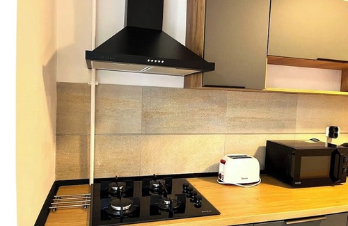 Includes a 4-burner stove, oven, fridge with freezer, dishwasher, washing machine, Bosch Tassimo coffee machine, kettle, toaster, and all cookware. Complimentary coffee and tea await you.