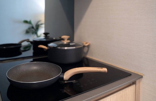 Wake up to panoramic Bangkok views in this stylish two bedroom apartment at Sukhumvit , right next to Ekkamai Gateway and BTS Ekkamai. Floor to ceiling windows flood the open living area with light and there is a fully equipped kitchen, smart TV with streaming and a marble bathroom with bathtub. High speed Wi‑Fi and a desk make remote work easy. After exploring the city, enjoy the rooftop infinity pool, gym, sauna, golf simulator, theatre, library and garden.