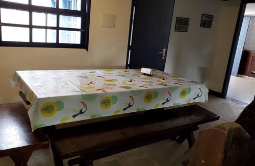 Gran casa de playa con arquitectura tradicional típica de Búzios, piscina, barbacoa, hermoso jardín en un gran terreno con árboles y pájaros, que incluye plátanos, cocoteros, limoneros, colibríes, balcón con hamacas, 4 habitaciones con aire acondicionado. acondicionado (2 suites con cama doble), despacho con mesa, silla y acceso a internet y espacio para colchonetas, 3 baños en la casa principal, 1 baño en la barbacoa. Garaje cubierto para 4 autos. No necesita coche, camine hasta las playas de Manguinhos (100 metros) y Geribá (600 metros). Supermercado, panadería y tienda de conveniencia a 50 metros. Capacidad para 10 personas en camas fijas.