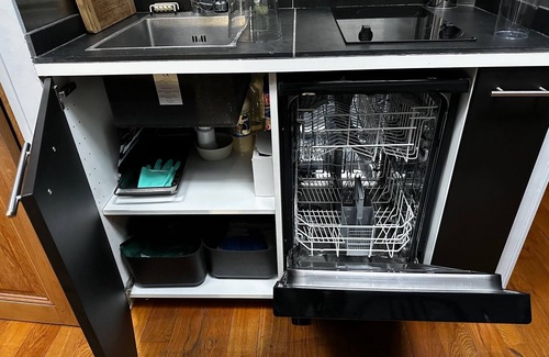 Al instalarte en este alojamiento de 2 dormitorios y 1 baño, encontrarás aire acondicionado, escritorio, servicios de conserjería y servicio local de entrega de comida. El cuarto de baño incluye un secador de pelo, toallas y papel higiénico. La cocina básica está equipada con placa de cocina, frigorífico y lavavajillas, además de cafetera y tetera, hervidor eléctrico y máquina de hielo. Podrás viajar con poco equipaje, porque tendrás una lavadora y una secadora a tu disposición.