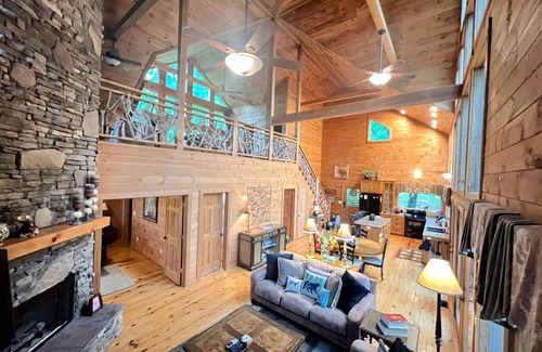 Situada en un sitio pintoresco de 20 acres, la experiencia 'Valley View Hideaway' es más que un alquiler de cabaña de un solo edificio. Ubicada en la cima de la montaña, esta cabaña aislada se encuentra en la calle sin salida cerrada de Twin Oak Mountain Road. Vistas panorámicas de 360 ° desde todas las habitaciones en la casa chalet ofrecen fantásticas vistas de Rich Mountain, Laurel Valley, Dry Valley y la cordillera Chilhowee. 'Valley View Hideaway' tiene espectaculares espacios abiertos que fluyen de una habitación a otra sin perder la cálida comodidad que desean los vacacionistas.