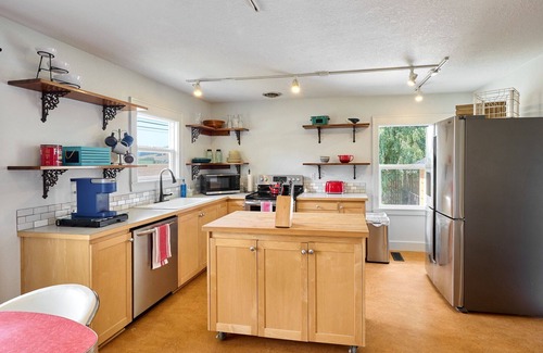 Fully-furnished two bedroom home located just west of Carlton, Oregon. Situated on nearly a half-acre, this property offers both solitude and proximity to work and play. The home features an open design encompassing the kitchen, dining, and living areas, with each of these rooms offering a stunning view of nearby hills and agricultural land. Once a working art gallery and studio, this home is now furnished in a mix of eclectic antiques and modern appointments.