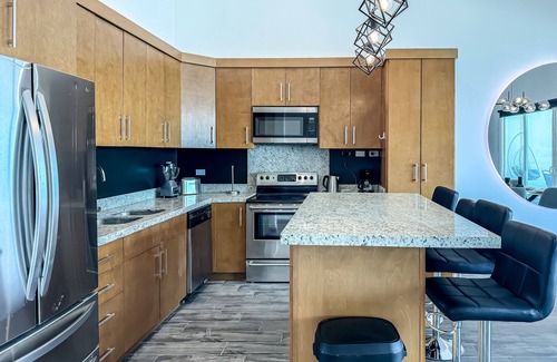 ✔ Cocina completamente equipada: cocine sus comidas favoritas con electrodomésticos de acero inoxidable y encimeras de granito.