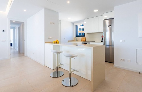 The apartment has 3 bedrooms, all with views of the Mediterranean, 2 bathrooms and guest toilet.