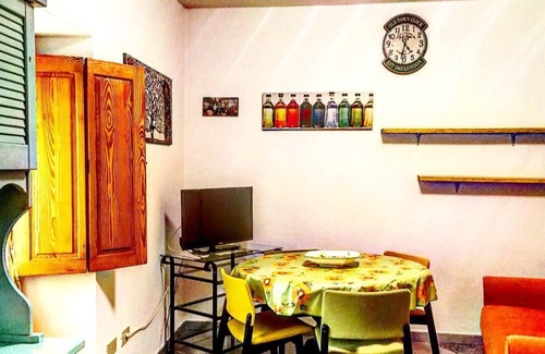 Casa pequeña, colorida y funcional en el centro de Sorgono. Ubicado frente a la plaza del mercado, con amplias y gratuitas posibilidades de estacionamiento. Recientemente renovado, la casa está en dos plantas conectadas por una escalera de caracol. En la planta baja se encuentran el salón-cocina y el baño con ducha; Arriba, dos dormitorios: uno doble y otro individual. La casa es muy acogedora y está equipada con todos los electrodomésticos (aire acondicionado frío-calor, nevera-congelador grande, horno microondas, cocina con horno a gas, lavadora-secadora, secador de pelo y plancha). Es un excelente punto de partida para una pareja con un hijo o tres amigos.