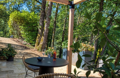 El pequeño Estudio es un espacio encantador y acogedor con hermosas vistas al jardín, adecuado para una estancia cómoda para relajarse y explorar la Dordoña.