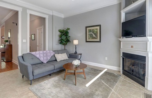 East Park Retreat puede alojar cómodamente a ocho personas. Aquí encontrará tres dormitorios, dos baños completos y medio baño. Esta propiedad tiene un impresionante tamaño de 2,016 pies cuadrados. Características como iluminación empotrada, pintura nueva y pisos de madera relucientes hacen que esta casa se sienta como una construcción nueva. East Park Retreat da la bienvenida a los huéspedes con un lindo vestíbulo. Puede dirigirse a la sala de estar de la casa para admirar un espacio fresco con un lujoso sofá, un televisor de pantalla plana y mucho espacio para moverse. Hay espacio para cenar en la sala de estar. Esta casa ofrece mucho espacio para dormir entre su habitación principal y dos habitaciones estándar. La cocina dentro de East Park Retreat es impresionante. Los gabinetes blancos, las encimeras blancas y los electrodomésticos nuevos le dan a este espacio una apariencia lista para la revista. Además, una larga península con cubierta de granito ofrece toneladas de espacio de preparación y asientos. Este es el lugar donde definitivamente querrás sentarte y disfrutar de tu café todas las mañanas mientras te quedas en Savannah. Puede aprovechar la cafetera de goteo que está estacionada dentro de esta cocina gourmet. Un conjunto de puertas dobles de vidrio y una chimenea realmente dan vida al espacio de la cocina de la casa.