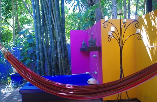 Las 10 villas del complejo ofrecen una combinación única de vida abierta y colores vibrantes, que reflejan el estilo de vida tropical. Su hamaca lo invita a relajarse en su propio patio privado con bañera y ducha al aire libre. La gran piscina (¡climatizada en invierno!) está rodeado de exuberantes jardines, muchas tumbonas, un bar en la piscina y una zona de barbacoa.