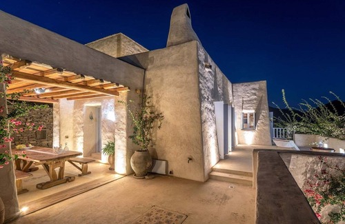 Saluda a tu lujoso refugio de verano, Danae. Esta villa de lujo única en Paros tiene vistas al paisaje lunar de la playa de Kolimbithres, que está a solo 5 minutos en coche, y ofrece una amplia terraza con lo que posiblemente sea la vista más impresionante de la isla. Con una ubicación ideal sobre la Acrópolis micénica de Paros, a solo 5 km de la animada vida nocturna de Naoussa, villa Danae puede ofrecerle lo mejor de dos mundos: tranquilidad y diversión al mismo tiempo. No pierdas más tiempo; ¡reúne un grupo de 13 y disfruta!