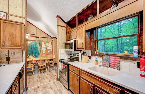Pocono House con bañera de hidromasaje al aire libre, admite mascotas, 2 canoas, kayak y chimenea | Casa en Gouldsboro