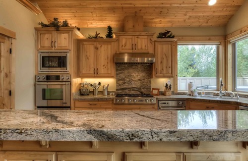 Elkhorn Lodge es una maravillosa y lujosa casa de vacaciones de 3.500 pies cuadrados, 6 habitaciones, 6. 5 baños, estilo casa de campo en Sunriver, Oregón. Esta espaciosa casa cuenta con todos los servicios de alta calidad que se puede soñar para sus próximas vacaciones. Relájese en esta casa excepcional con el uso de troncos, madera natural, granito, pizarra y una gran "gran sala" abierta con techos abovedados de cicuta.