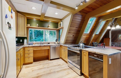 Pase el día disfrutando de las aguas cristalinas del río Sandy o explore la ciudad de Welches. Muchos bares y restaurantes están disponibles si no tiene ganas de cocinar. Y no puede olvidar absolutamente todo el increíble esquí y el snowboard en el cercano Timberline Ski Lodge, SkiBowl y Mt. Hood Meadows, todos a menos de 25 millas de distancia.
