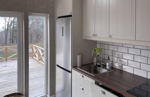 Rodeado de bosques y cerca de hermosas playas de arena, este moderno alojamiento compuesto por un edificio principal y un anexo le ofrece un acogedor hogar mientras explora la encantadora campiña. Prepare suculentas comidas en la cocina americana y planifique sus aventuras en la luminosa sala de estar. Relájese con un libro después de un largo día al aire fresco del mar o disfrute del acogedor ambiente con un juego de mesa.