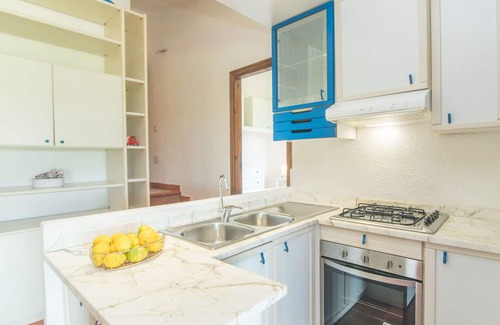 Casa adosada. En el barrio de Porto Rafael, a 3 km del centro de Palau, a 35 km del centro de Porto Cervo, en una pendiente, a 500 m del mar. Privado: terreno 95 m2 con césped. Acceso empinado, estrecho durante 150 m. 30 m camino hasta la casa. Aparcamiento (para 2 coches, cubierto). Tienda 1 km, supermercado 2 km, parada autobús 3 km, playa de arena "di Nelson" 500 m. Campo de golf (18 hoyos) 35 km. A tener en cuenta: coche recomendable.