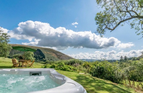 Preciosa casa de vacaciones privada con WIFI, jacuzzi, TV, patio, vista panorámica y aparcamiento | Casa en Llandrindod Wells