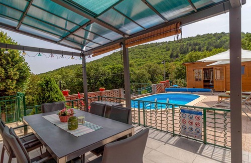 Esta encantadora casa es una invitación para todos los amantes de la naturaleza. Se encuentra cerca de un bosque en el interior de Novi Vinodolski y está rodeada de naturaleza virgen. La casa, agradable y amueblada con sencillez, es adecuada para familias con niños. Aquí podrá disfrutar del canto de los pájaros y del hermoso paisaje o simplemente relajarse en paz con su libro favorito. Refrésquese en la piscina en los días calurosos y séquese al sol. Después de un día al aire libre, encontrará un calor acogedor en la bañera de hidromasaje.