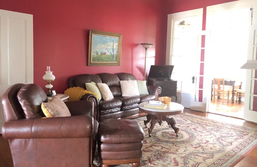 Nuestra casa ofrece mucho espacio para extenderse y relajarse entre nuestros porches, terraza acristalada, sala, comedor y cocina. Desayuno, bocadillos y bebidas de cortesía siempre se encuentran en nuestra cocina junto con café y cápsulas de café. Nos esforzamos por hacer que nuestro hogar se sienta como si nunca hubiera dejado el suyo.