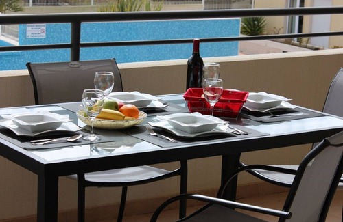 El apartamento bellamente amueblado, primer piso con balcón privado con vistas a los jardines y la piscina comunitaria. El apartamento se beneficia de aire acondicionado y WiFi gratis