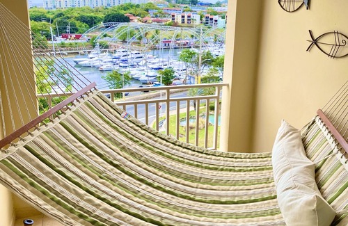 Relájese y descanse en nuestro acogedor apartamento con impresionantes vistas al mar y al puerto deportivo. Disfrute de 3 piscinas refrescantes, jacuzzi, gimnasio, cancha de tenis y cancha de básquetbol dentro de nuestra hermosa comunidad privada. Estamos cerca de atracciones locales, playas y restaurantes.