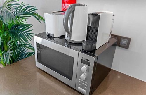 Prepara una comida casera en la cocina, equipada con horno, placa de cocina y frigorífico, además de cafetera y tetera, microondas y utensilios de cocina. No necesitarás llevarte mucho equipaje, porque hay acceso a una lavandería. Otras comodidades incluyen ropa de cama, una tabla de planchar, aire acondicionado y una mesa de comedor.