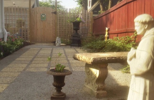 La cabaña cuenta con su propia entrada independiente en el callejón detrás de la casa principal.