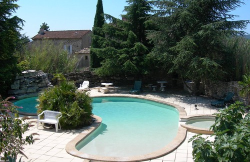 En St Julien de Peyrolas, en la parte inferior de las gargantas del Ardèche, 4 cómodos apartamentos, en gran mas de piedra provenzal con piscina 13/5 en 5000 m² de terreno vallado y arbolado con bosque de pinos.