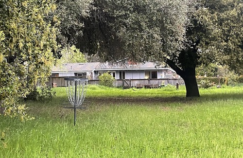 Las puertas de doble vidrio lo llevan a un gran patio con una mesa de teca y una sombrilla con capacidad para 8 personas y con vistas al patio trasero interminable con robles maduros. Grandes eucaliptos personalizados y sidra de bandejas proporcionaron amplios asientos. Una parrilla de gas exterior que se puede cambiar a un horno de pizza da a la pradera. … BBQ con una vista. El comedor está al lado de la sala de estar, que tiene dos áreas para sentarse. Hay un televisor de 55 pulgadas.