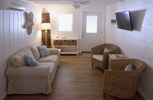 Cabaña de playa completamente renovada con pisos nuevos de corcho, encimeras de granito, electrodomésticos de acero inoxidable, calefacción central y aire acondicionado.