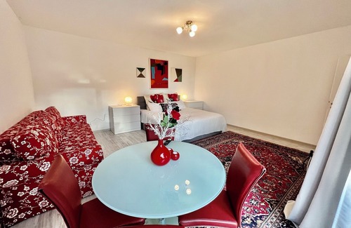 Aprovecha para preparar una comida casera: dispones de horno, placa de cocina y frigorífico, además de cafetera y tetera, utensilios de cocina y tostadora. Disfruta del wifi y de la televisión. El cuarto de baño incluye un secador de pelo y toallas. Otras comodidades de este alojamiento de 1 dormitorio y 1 baño incluyen un sofá cama, ropa de cama y calefacción.