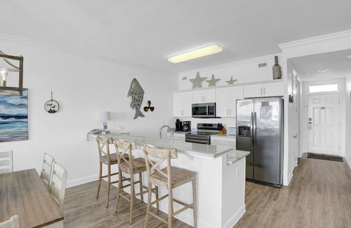La suite principal cuenta con una cama King size, TV de pantalla plana y acceso al balcón. El baño principal cuenta con tocadores dobles, bañera de jardín y ducha separada. El segundo dormitorio cuenta con 2 camas Queen. También hay un televisor de pantalla plana y baño privado. Esta unidad acomodará 8 con un sofá cama en la sala de estar.