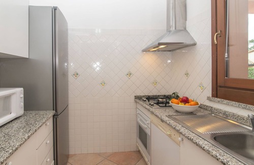 "Rei Sole (REI306)", casa 4 estancias 100 m2. Espacioso, con mobiliario bonito y de buen gusto: salón-comedor con chimenea, mesa de comedor y TV satélite. Salida a la terraza. 2 dorm cada habitación con 1 cama doble. 1 dorm. con 2 camas. Cocina abierta (1 fogón, horno, lavavajillas, 3 fuegos, microondas). 2 ducha/WC. Calefacción eléctrica, aire acondicionado. Terraza cubierta, jardín. Muebles de terraza, barbacoa, tumbonas (2). El alojamiento dispone de: lavadora, cuna (extra). Internet (Wifi, extra). IT111042B4000F3200