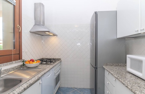 "Rei Sole (REI307)", casa 4 estancias 100 m2. Espacioso, con mobiliario bonito y de buen gusto: salón-dormitorio con 1 sofá-cama doble, chimenea, mesa de comedor y TV satélite. Salida a la terraza. 2 dorm cada habitación con 1 cama doble. 1 dorm. con 2 camas. Cocina abierta (1 fogón, horno, lavavajillas, 3 fuegos, microondas). 2 ducha/WC. Calefacción eléctrica, aire acondicionado. Terraza cubierta. Muebles de terraza, barbacoa, tumbonas (2). El alojamiento dispone de: lavadora, cuna (extra). Internet (Wifi, extra). IT111042B4000F3200